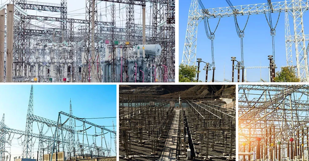 Azpiestazioa eta kanpoko beste hari batzuk, izen orokorraren euskarri-egitura nagusiko ekipoak. Tentsio-mailaren, eskalaren, ekipoen diseinuaren, eraikuntza- eta funtzionamendu-baldintzen eta tokiko klima-baldintzen arabera zehazten da. Elektrizitatearen izaeraren arabera, tentsio-maila ezberdinek distantzia jakin bat behar dute hariak, lurrerako hariak eta egituretarako hariak. Beraz, azpiestazioen egitura zutabe altuak eta sekzio txikiak ditu, malgutasun handiko egiturari dagozkionak. Diseinu teknologikoaren tipologiaren sailkapenari dagokionez, diseinu ertaina, altuera erdia eta trazadura altua daude. Diseinu erdi altua eta diseinu altua tentsio handiko maila duten azpiestazioetan erabiltzen dira batez ere.