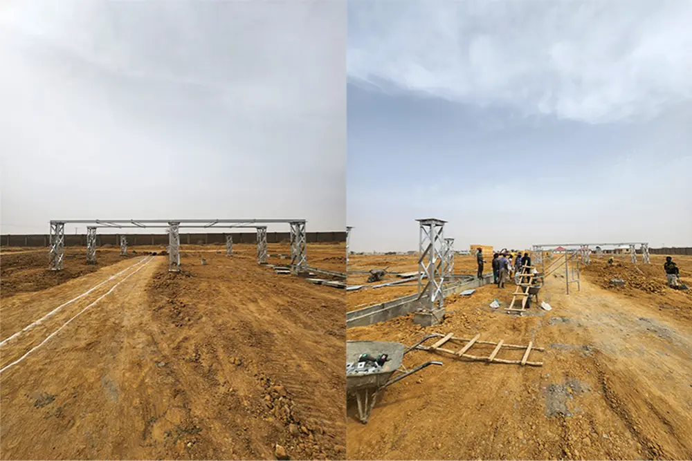 Bertako tenperatura 35,6 gradu Celsius-ra iritsi bada ere, tripulazioa azkar mugitzen da. Altzairu galbanizatuko osagaiak lurrean daude orain eta jartzeko prest. Egitura hauek 330 kV-ko azpiestazio baten eskakizun astunei aurre egiteko eta tokiko sare elektrikoaren epe luzerako egonkortasuna bermatzeko eraiki dira.